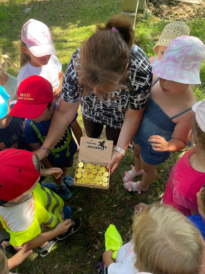 Cesta za pokladem je zahalená tajemstvím a doplněná úkoly. Pro naše děti není nic problém, úkoly zvládly na jedničku a poklad našly, hurá!