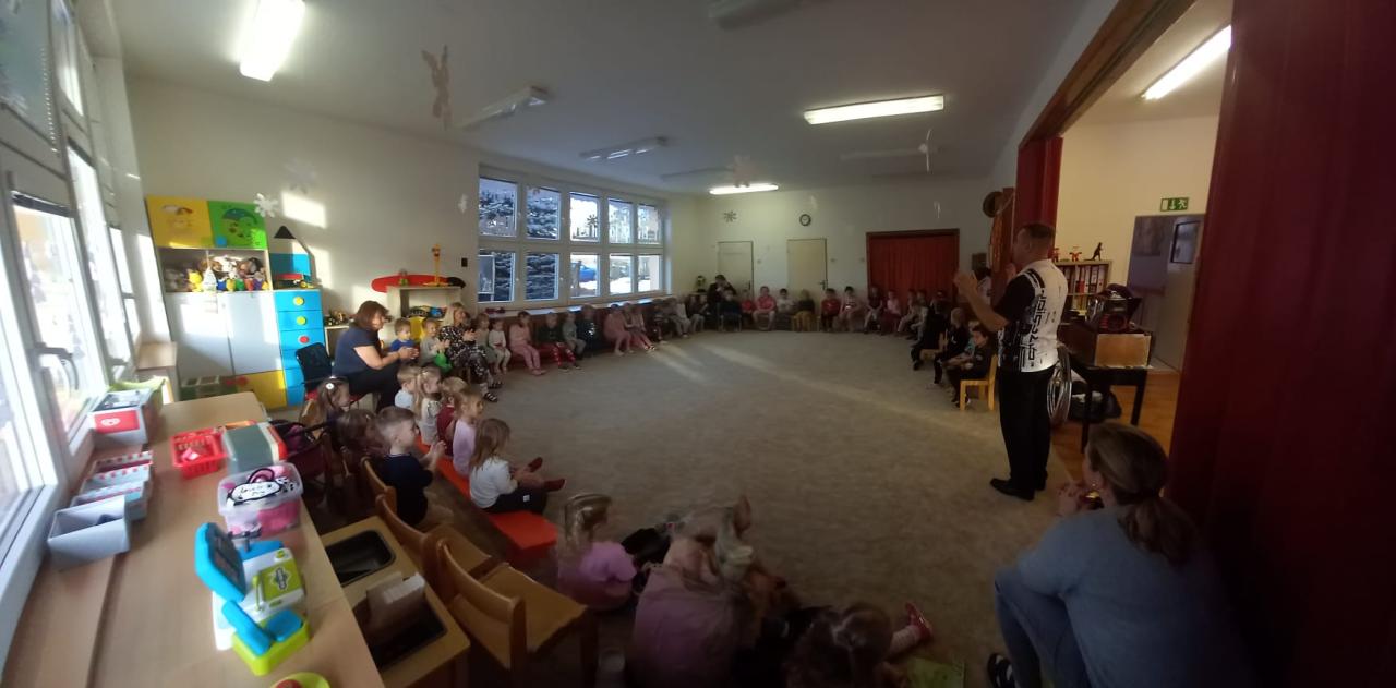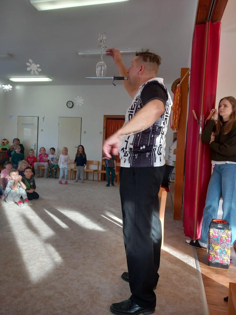 Po roce zavítala do mateřské školy rodina Paldusova s cirkusovým představením. Kromě žonglování, akrobacie a balancování se skleničkami na noži děti viděly živou vaku veverku a kouzelnické triky s pejskem a králíčkem.