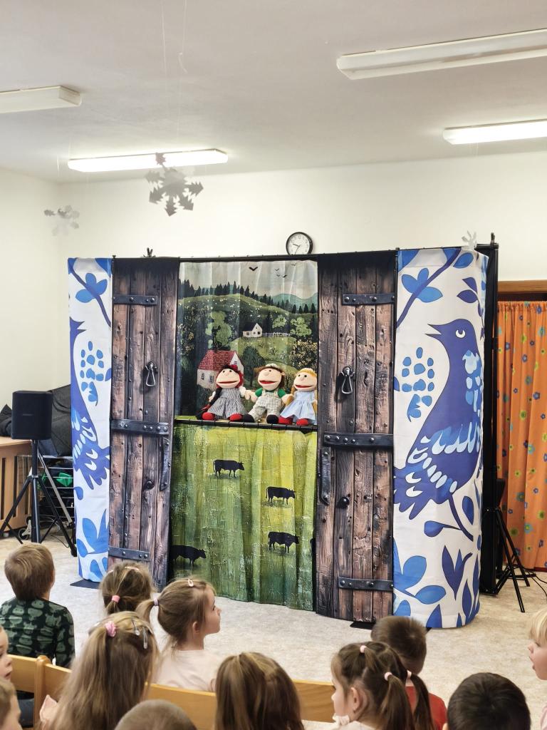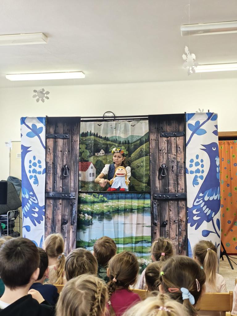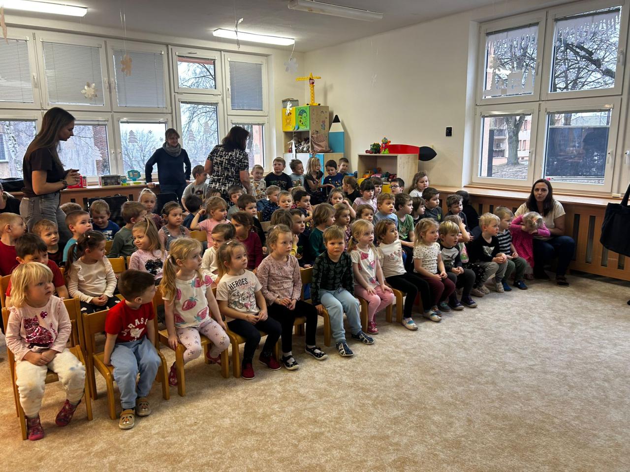 Po roce do školky zavítalo divadlo Papeti a Treperenda s novým představením. Tentokrát se děti mohly seznámit například s mlsným kosem a peckou spadlou z višně, broukem chrobákem, nešťastnou ropuchou, nenasytným pelikánem nebo třeba veselým velbloudem, který v každé poušti zaručeně zabloudí.